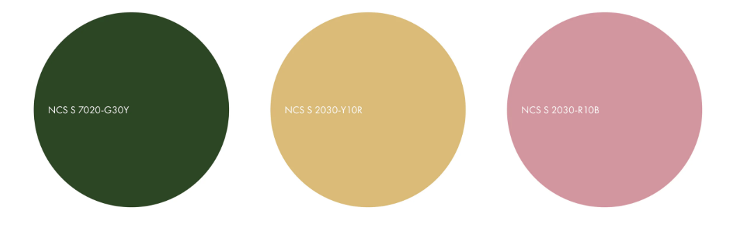 Kulturell varme: Her gir NCS S 0907-Y90R en varm, pudrete base med mild rød-gul varme. En støttende fargetone som NCS S 3020-Y50R tilfører dybde som minner om tekstilfarger eller naturlige pigmenter. En mørkere tone som NCS S 2020-R90B forbinder kombinasjonen med håndverkstradisjoner og historiske materialer.